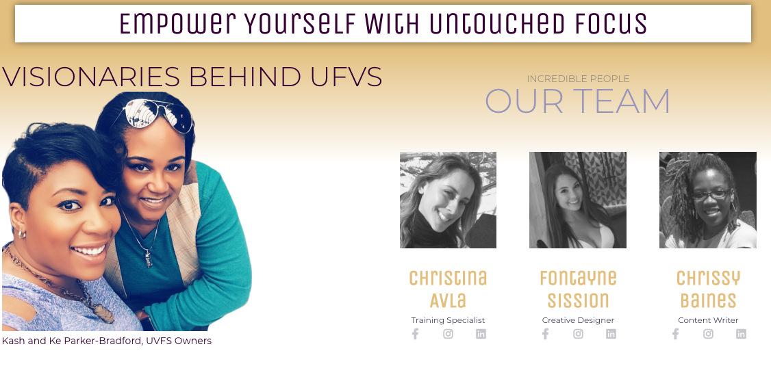 Untouched Focus Virtual Executive Team has a passion for seeing small businesses grow. We work with wellprepreneurs and small business owners who are ready to scale their business to help them streamline their operations and optimize their brand.